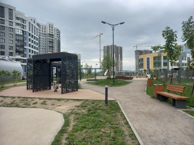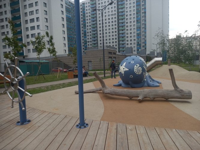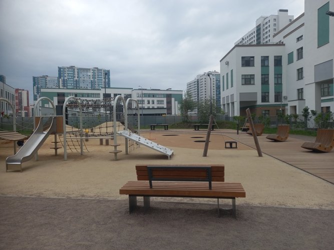 Всего в 7 минутах ходьбы от ЖК расположен Южно-Приморский парк, где есть аттракционы фонтан и детская площадка
