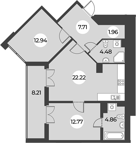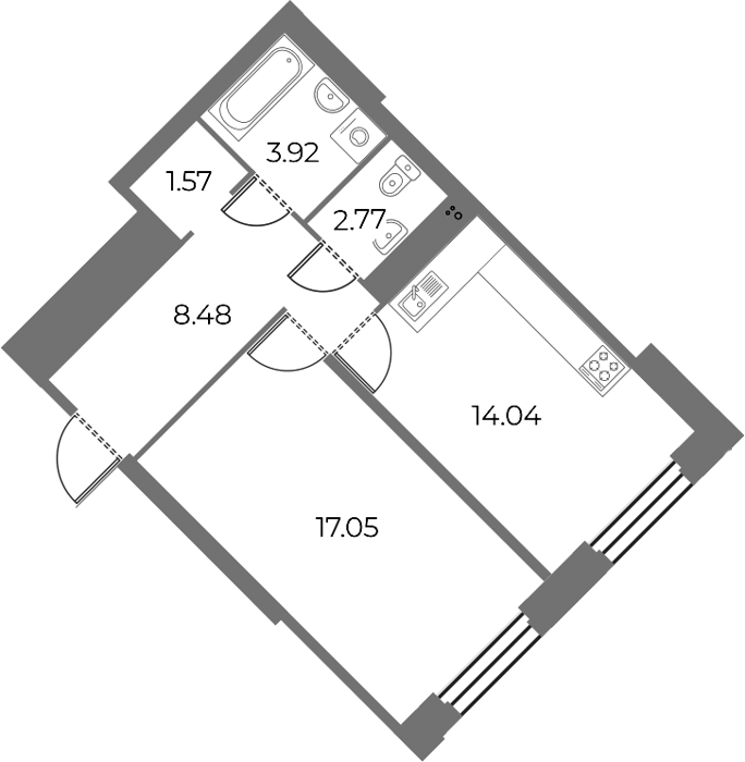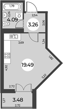 Площадь от 28.58 м2