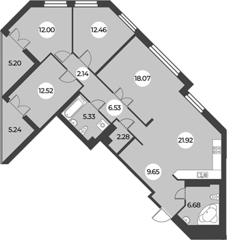 Площадь от 98.52 м2