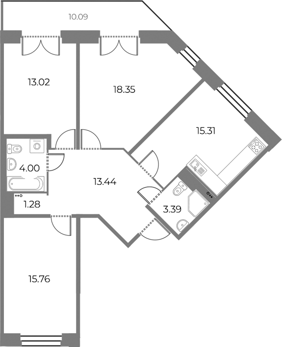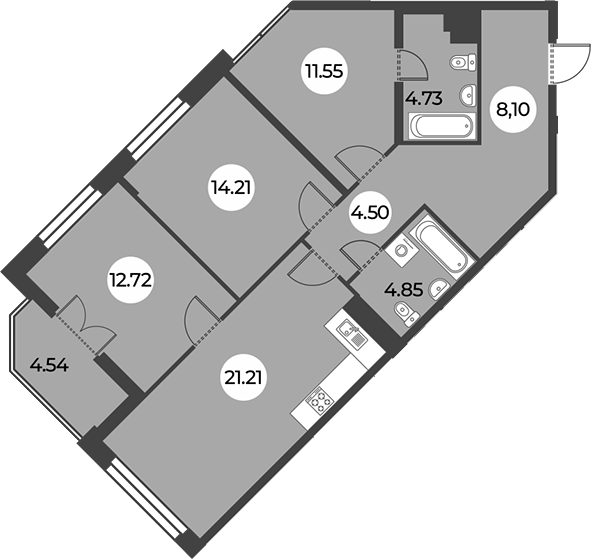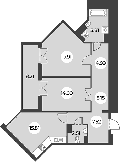 Площадь от 56.78 м2