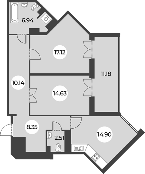 Площадь от 43.03 м2